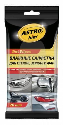 Салфетки влажные ASTROhim для стекол, зеркал и фар (20 шт) УЦЕНКА (просрок)