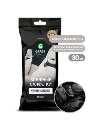 Салфетки влажные GRASS для ухода за кож. салона (в уп-30шт)