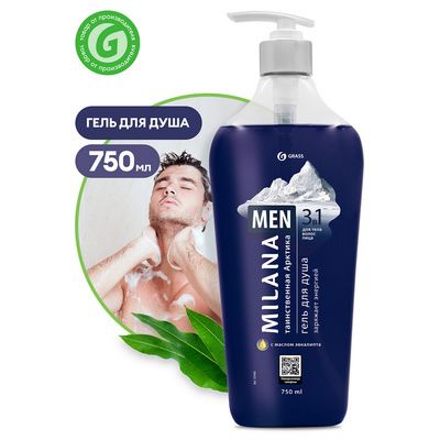 Гель для душа 750 мл GRASS Milana Men Таинственная арктика с маслом эвкалипта