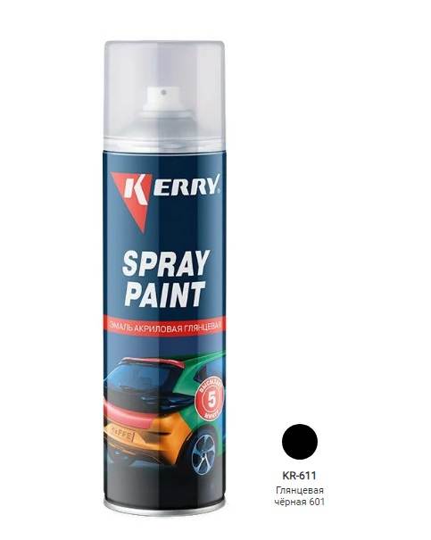 Эмаль акриловая быстросохнущая 650 мл аэрозоль KERRY черная глянцевая