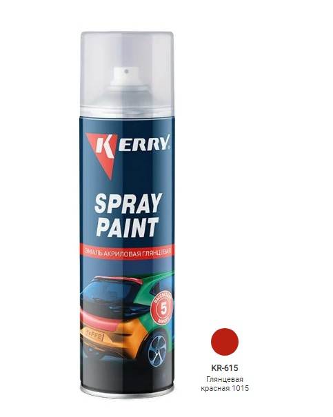 Эмаль акриловая быстросохнущая 650 мл аэрозоль KERRY красная глянцевая