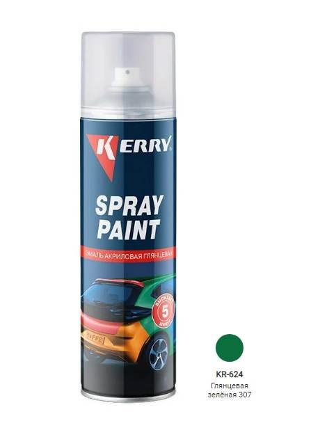 Эмаль акриловая быстросохнущая 650 мл аэрозоль KERRY зеленая глянцевая