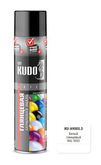 Эмаль акриловая универсальная 800 мл аэрозоль KUDO, RAL 9003 белая высокоглянцевая
