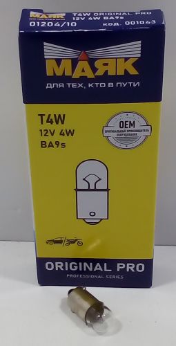Лампа 12V 4,0W МАЯК BA9S одноконтактная цокольная, приборная/габарит ORIGINAL PRO АКЦИЯ