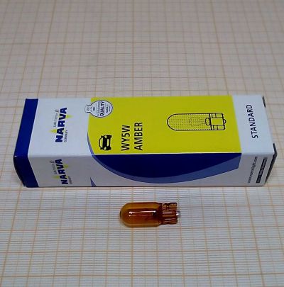 Лампа 12V 5,0W NARVA W2,1x9,5d одноконтактная безцокольная желтая, указ.поворотов