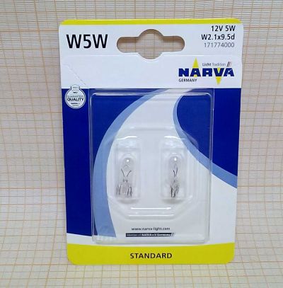 Лампа 12V 5,0W NARVA W2,1X9,5d одноконтактная безцокольная (2 шт), указат.поворотов/стопсигнал/ном