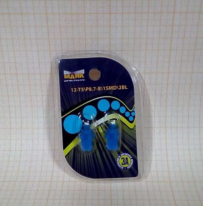 Светодиод T 5 12V 1,2W BLUE 1SMD МАЯК безцокольная с патроном (панель приборов) (2 шт)