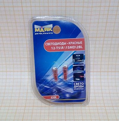 Светодиод T 5 12V 1,2W RED 1SMD МАЯК 2.0х4.6d безцокольная (панель приборов) (2 шт) АКЦИЯ